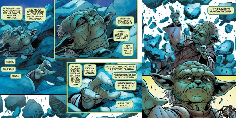 Con su nueva fuerza en la Fuerza, Yoda pudo liberarse de las rocas que habían amenazado con atraparlo indefinidamente, solo momentos antes de que Luke Skywalker aterrizara su X-Wing en el mundo pantanoso como se ve en El Imperio Contraataca. Tal como, La renovada fuerza de Yoda como Jedi fue rápidamente recompensada, ya que se le proporcionó la esperanza de que no se convertiría en el último Jedi después de todo.Es un momento profundamente introspectivo pero poderoso para el Gran Maestro Jedi, que sirve como un preludio dinámico al entrenamiento de Luke en el Episodio V (e incluso a las enseñanzas de Yoda a Luke en las secuelas). El último Jedi).