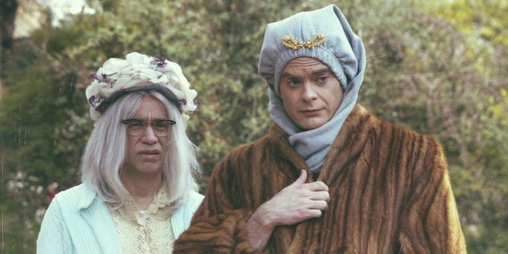 Nuevamente, aquí es donde prospera Armisen, interpretando una variedad de personajes chiflados. En este caso particular, en el primer episodio, el programa parodia uno de los documentales más famosos de todos los tiempos, jardines grises (1975), y Armisen interpreta una versión de Edith Beale frente a la versión de Little Edie de Hader.