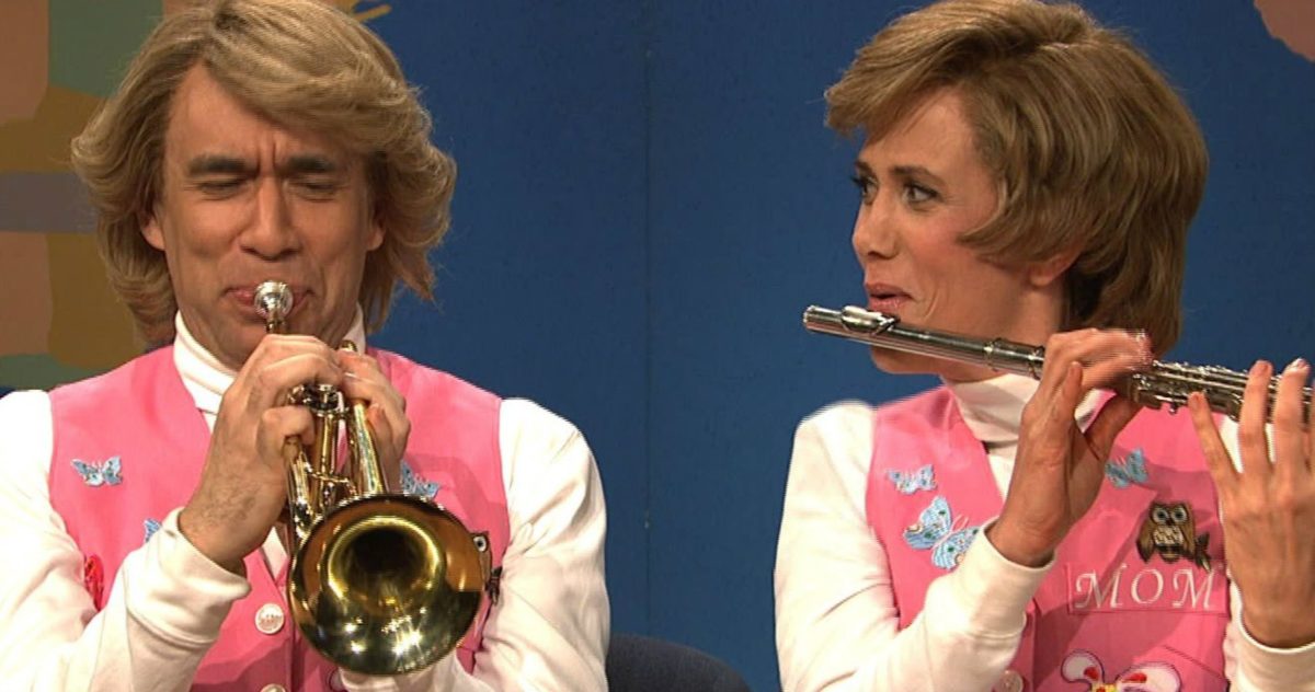 Y ella es Dooneese! Un personaje recurrente en El show de Lawrence WelkDooneese está en un cuarteto de hermosas hermanas cantantes, salvo Dooneese. Es todo un espectáculo para ver, con una frente masiva y un par de manos de bebé para mantener las cosas salvajes. Mientras sus tres hermanas cantan sobre el hombre destacado de la parodia, Dooneese canta sobre las cosas horribles que le suceden, todo mientras es muy práctica con su invitado masculino. Las travesuras con las que se levanta son salvajes y crean una parodia absolutamente hilarante que Wiig lleva a la máxima diversión.