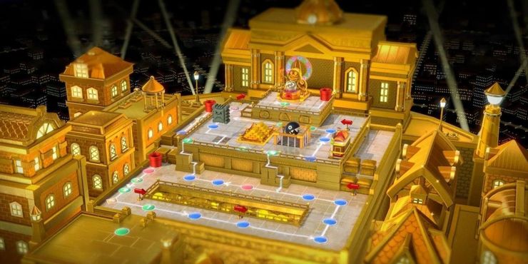 Con impresionantes elementos arquitectónicos dorados e incluso una estatua gigante de Kamek, este Fiesta de Súper Mario tablero deslumbra visualmente. Fuera de esto, la jugabilidad es magnífica, con emocionantes espacios de eventos que pueden hacer que los jugadores sean llevados a la fortuna por Toadies y atacados por el Chain Chomp que se encuentra en el centro del tablero.