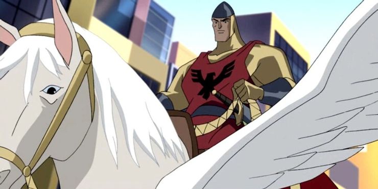 A pesar de ser un pez fuera del agua como un caballero literal de la corte del Rey Arturo transportado al siglo XXI, Shining Knight todavía encaja perfectamente en la Liga de la Justicia. Su coraje, determinación y estricto código moral le permitieron adaptarse mejor que muchos otros a una vida de superhéroe. (Sin embargo, la espada y la armadura encantadas ayudan).