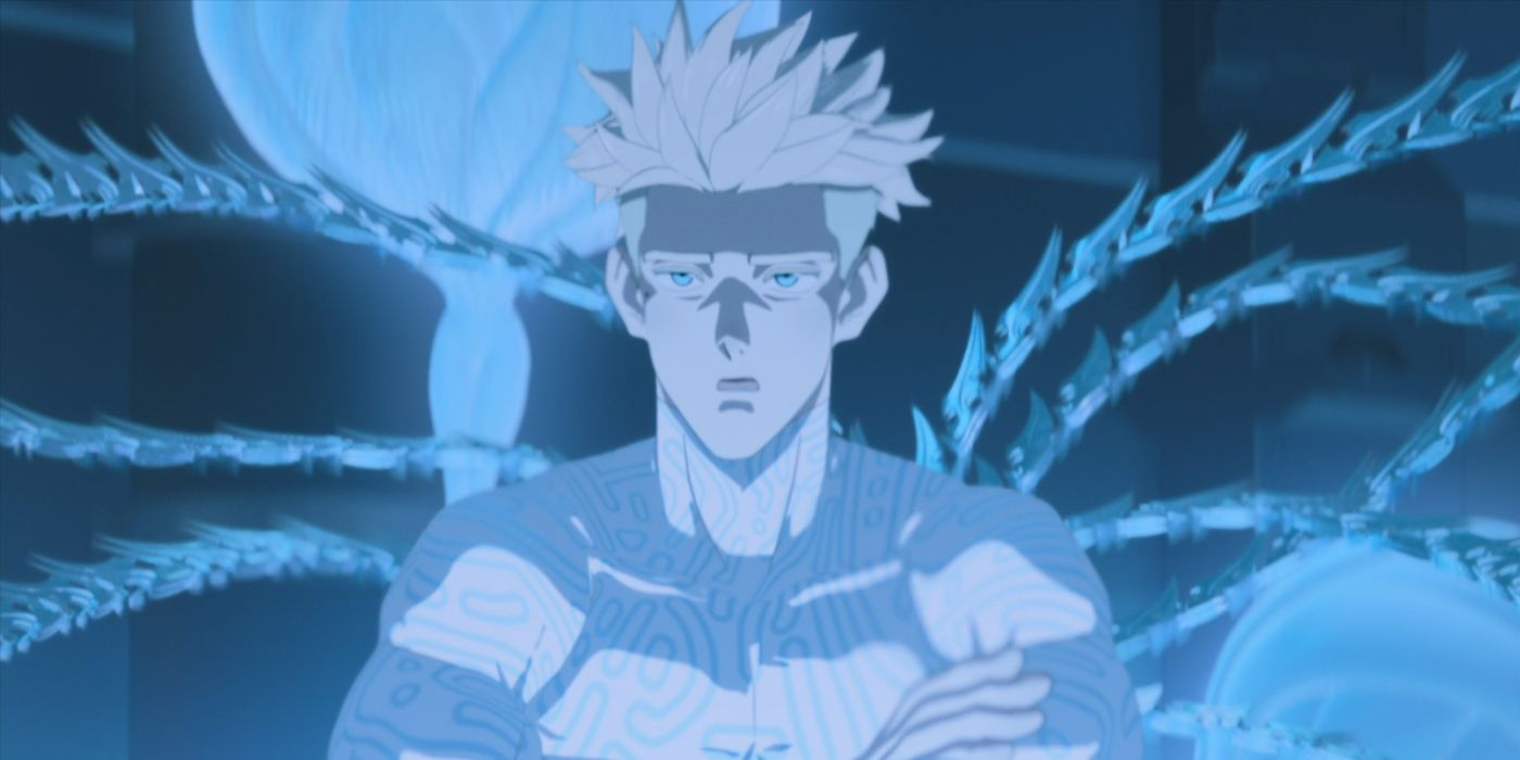 La espeluznante iluminación roja es lo suficientemente horrible, pero la escena también está filmada para que los espectadores primero vean a Tesla y se den cuenta de lo que están mirando de la misma manera que lo hacen los gemelos: pieza por pieza diseccionada. Vash no entiende completamente lo que acaba de ver, solo que lo asustó. Pero Knives lo hace absolutamente, y lo cambia para siempre, llevándolo a estrellar el barco por la furia y la autopreservación recién ardientes.