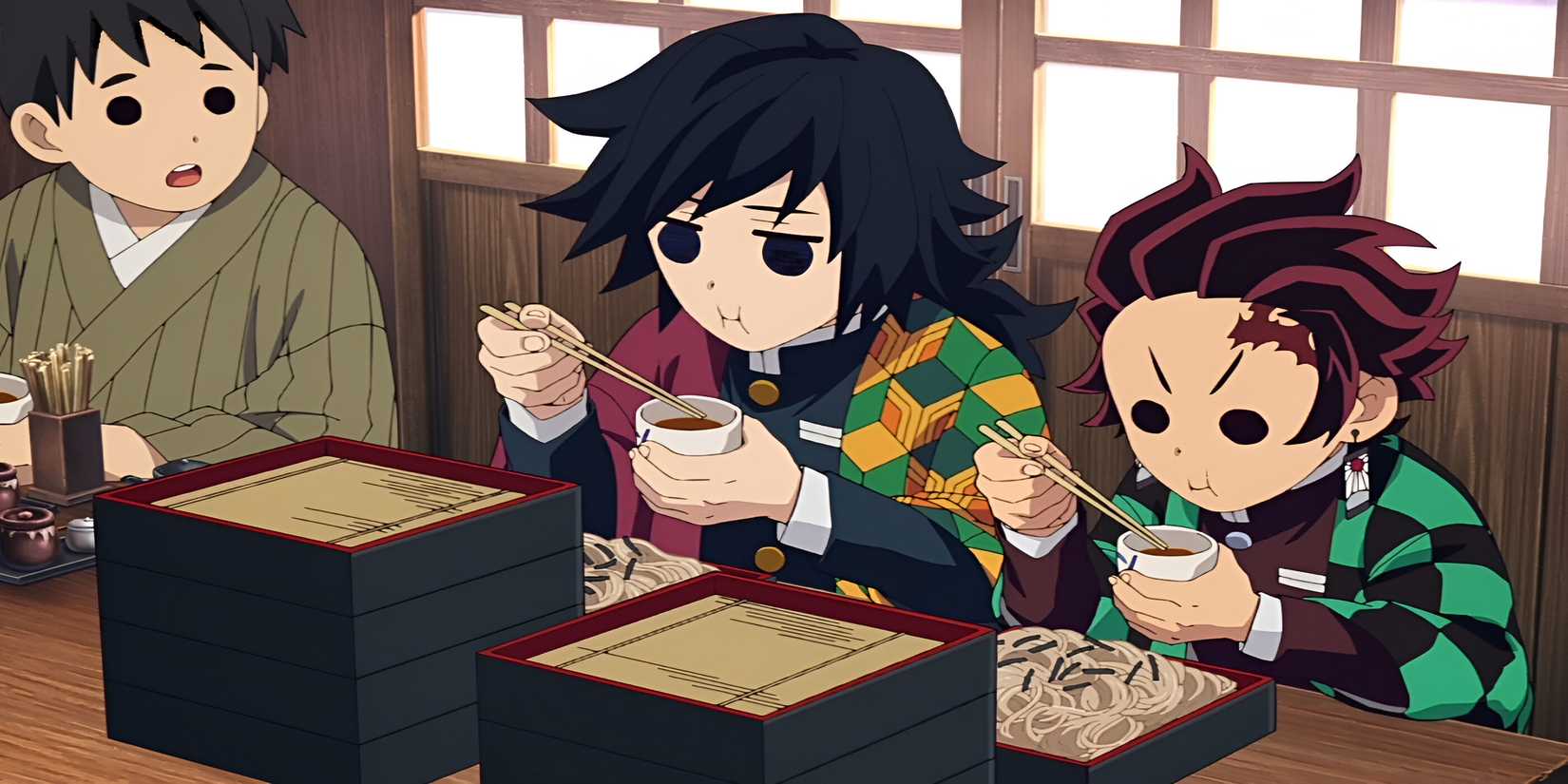 La parte más divertida es que Tanjiro hizo todo esto mientras mostraba una expresión brillante y cómica. La escena más destacada del episodio fue la línea de pensamiento de Tanjiro que lo llevó a la conclusión de que lo que tenía que hacer era Desafía a Giyu a un concurso de comida.para sorpresa de Giyu, quien termina aceptando y uniéndose al entrenamiento de Hashira gracias a Tanjiro.