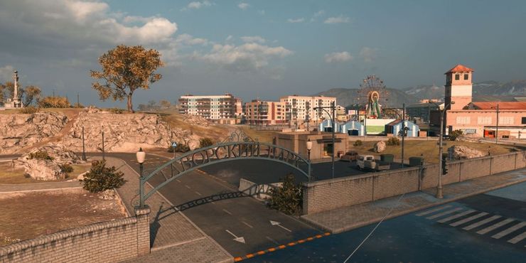 El estadio está ubicado en la región centro-este de Verdansk, justo al norte del centro. El área consta de las gradas del estadio, una grúa alta y los campos abiertos dentro y alrededor de la arena.