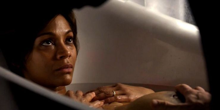 En una de sus raras actuaciones en televisión, Saldana protagonizó el icónico papel principal de Rosemary Woodhouse en la miniserie de dos partes de NBC, El bebé de Rosemary. Al ponerse en los zapatos de Mia Farrow del célebre clásico de terror, Saldana se comportó bien.