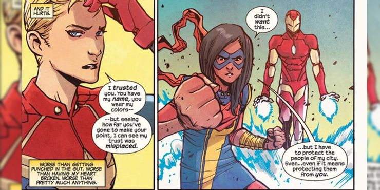 Aunque Kamala Khan se inspiró en Carol Danvers para convertirse en un superhéroe en primer lugar, los dos tuvieron una pelea brutal durante los eventos de segunda guerra civillo que finalmente los llevó a elegir diferentes lados del conflicto.