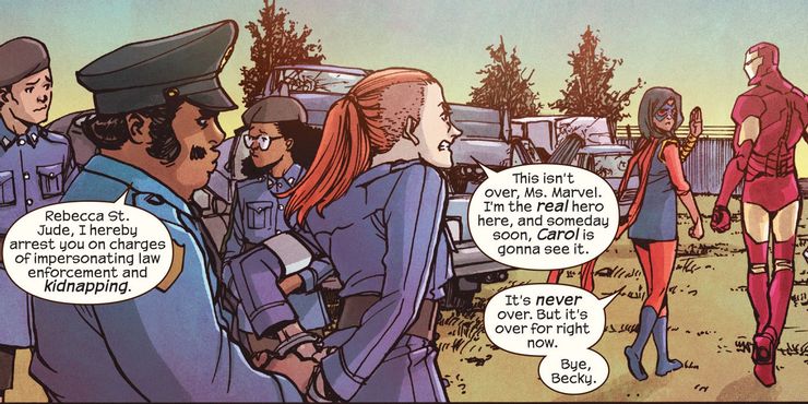Becky puede absorber algunos de los golpes más grandes de Kamala en el traje, y puede aparecer en la próxima serie de MCU. Becky era un miembro demasiado ambicioso de Carol Cadets en los cómics, un escuadrón de adolescentes que Carol Danvers reunió para proteger a Jersey City.
