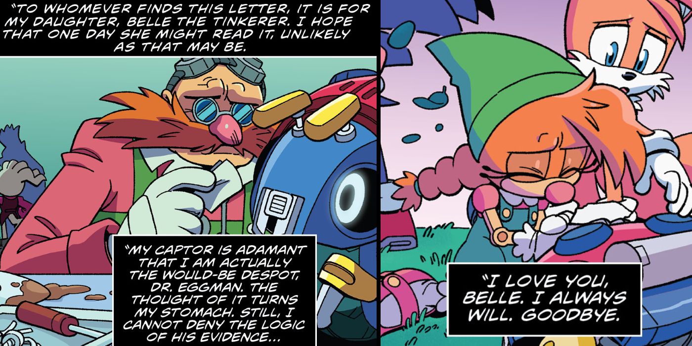 Belle the Tinkerer es tan fascinante porque fue creada por el buen alter ego del Dr. Eggman conocido como Mr. Tinker. Belle inicialmente se destacó porque luchó con la idea de que el Dr. Eggman en realidad podría ser malo, ya que solo conocía al dulce hombre que la creó. Pero el de Evan Stanley Sonic #49 hace que toda la situación sea inolvidable cuando Belle encuentra una carta de despedida que le escribió el Sr. Tinker antes de que se convirtiera una vez más en el Dr. Eggman. El Sr. Tinker expresa miedo y consternación ante la perspectiva de convertirse en el Dr. Eggman y cuenta cuánto se preocupa por Belle, algo que ella nunca podrá escucharlo decir en persona.