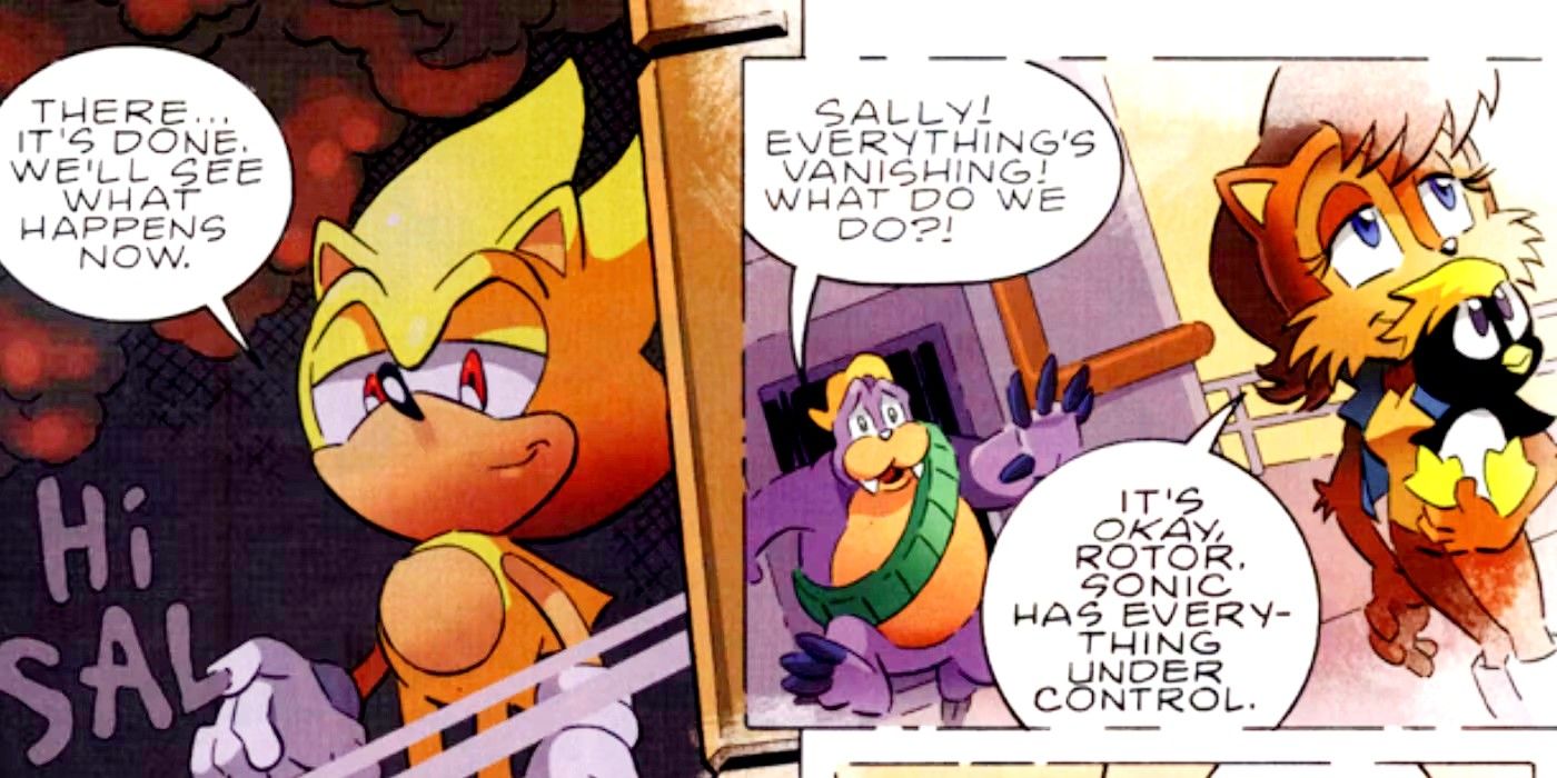 Sin embargo, justo antes de que Sonic arregle la realidad, puede dejarle un mensaje a Sally, mostrando que él también recuerda su pasado compartido (en Ian Flynn, Tracy Yardley y Jonathan Gray). Sonic el erizo #229.) Los dos se acercan a medida que la nueva realidad se desvanece, y Sally expresa su fe en que Sonic ha salvado el día. Es un momento desgarrador ya que toda la historia de Sonic y Sally recibe una nota de gracia incierta, pero se entristece aún más por el hecho de que, mientras Sonic hace logra arreglar la realidad: Sally es robotizada poco después, lo que hace que incluso esta victoria suprema sea el preludio de la angustia. Agridulce, que abarca toda la amada historia de Archie Comics, y seguida de una pérdida inesperada, esto es fácilmente Sonic el erizoEl momento más desgarrador.