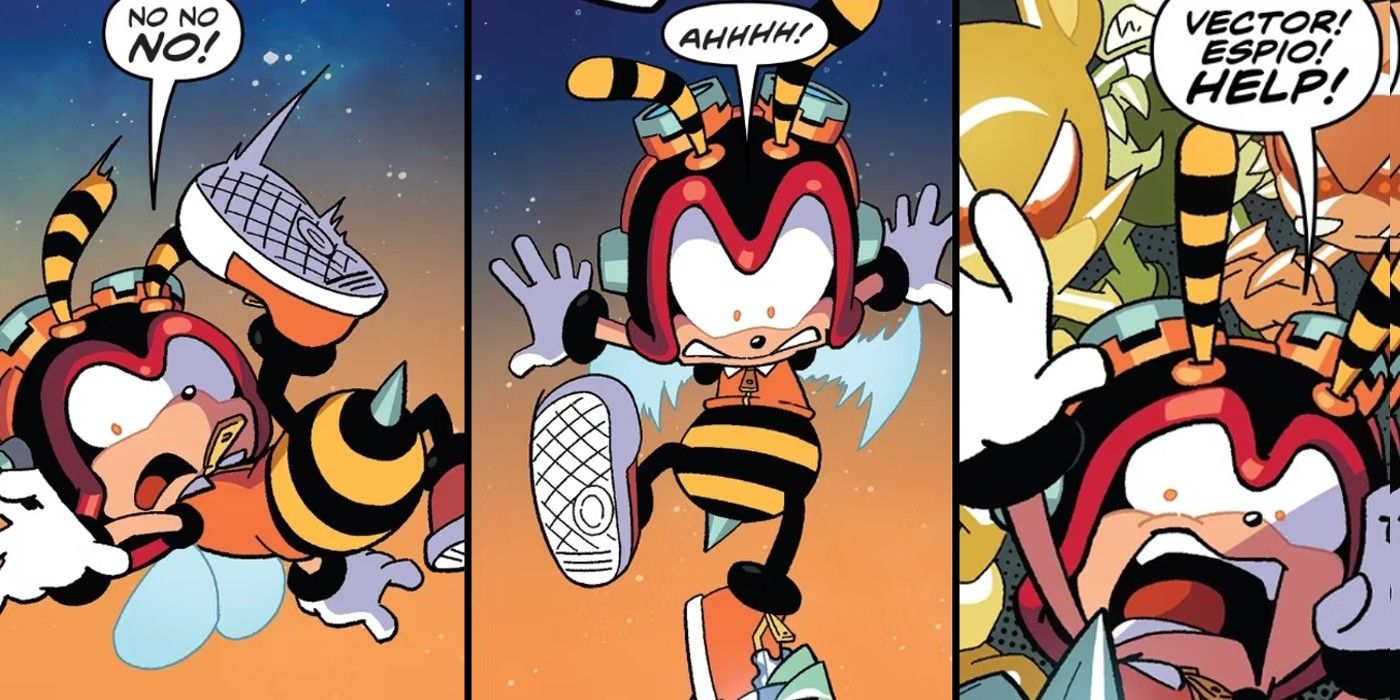 Charmy Bee no es el personaje mejor desarrollado en IDW Sonic el erizo, ni tampoco los otros miembros de Chaotix, incluido Vector the Crocodile. Pero Ian Flynn y Tracy Yardley’s Sonic el erizo #17 transforma una discusión entre los dos en algo desgarrador cuando la tragedia le sucede a Charmy. Mientras los héroes ayudan a los civiles a escapar de una horda de Zombots, Vector toma la decisión de abandonar a una mujer infectada para proteger al grupo más grande. Charmy protesta y finalmente intenta salvarla, solo para que los zombis robóticos lo agarren y lo arrastren hacia abajo mientras grita pidiendo ayuda. Como un personaje feliz y despreocupado, es especialmente trágico ver a Charmy caer en conflicto con su propio heroísmo.