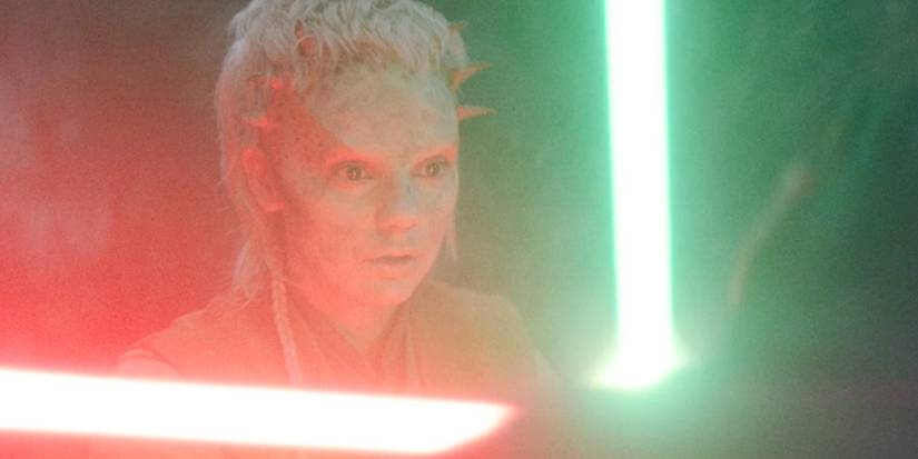 Deseando reunirse con su hermana gemela, a Mae ya no le importa servir a Qimir. Sin embargo, eso parece haber cambiado después de que Osha se niega a abrazar a su hermana y sigue creyendo que ella es la única responsable de la muerte de su familia. En respuesta, Mae lamenta que a Osha le hayan lavado el cerebro y que los Jedi hayan “te pusiste en mi contra”. Esto refleja las líneas de Anakin en Venganza de los Sith con su punto de vista de que todos los Jedi se volvieron contra él, así como su esposa Padmé.