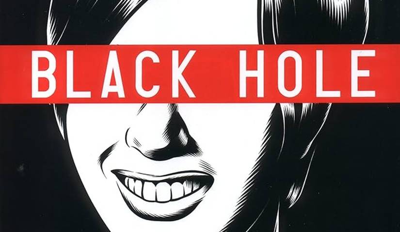 Un atributo destacable de la serie sería la capacidad del escritor/artista Charles Burns para tejer una atmósfera de delirio desconcertante y desquiciado, permitiendo que el horror se forme en los bordes y se filtre gradualmente. No apto para los débiles de corazón. Agujero negro Es una obra maestra del terror discreto.