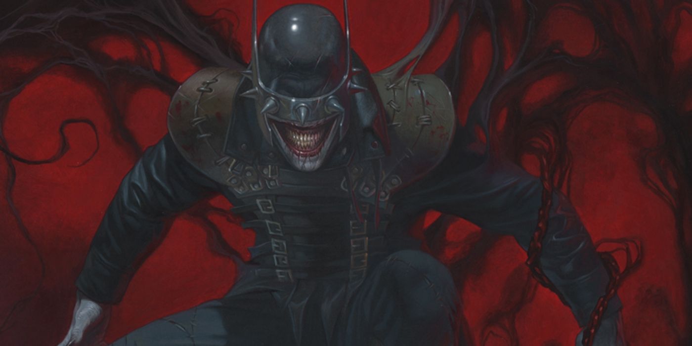 Batman Who Laughs proviene del Dark Multiverse y fue una figura clave en el Metal y Death metal eventos. Esta variante retorcida de Bruce Wayne es un Batman que ha sido corrompido por Joker Venom. Tiene toda la previsión y planificación del Caballero Oscuro con todo el comportamiento psicópata desquiciado del Príncipe Payaso del Crimen. Es lo peor que jamás haya salido del Multiverso Oscuro y es una verdadera amenaza al nivel de la Liga de la Justicia.