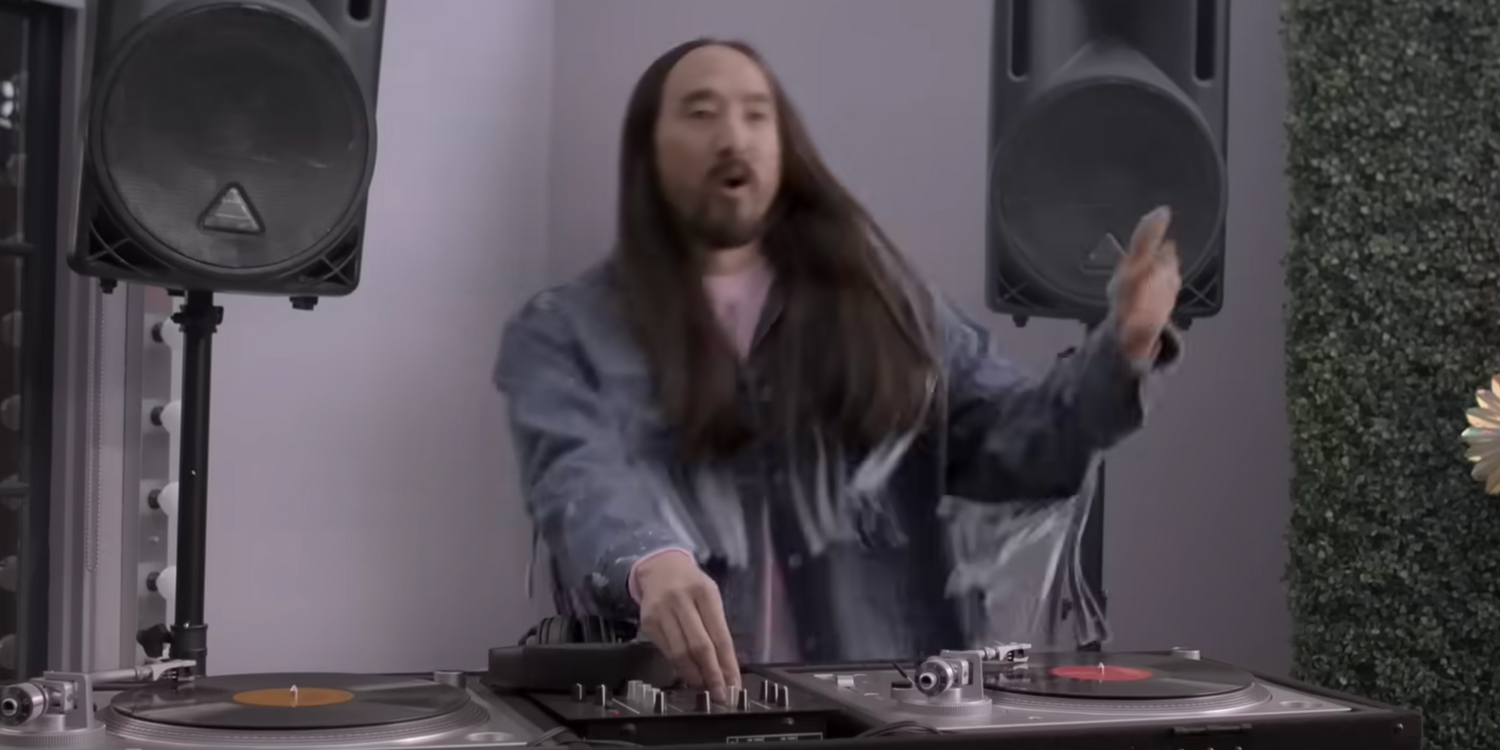 Durante una fiesta de la industria musical organizada por los Muppets, el DJ y productor de música electrónica Steve Aoki aparece rápidamente como el DJ de la fiesta. Si bien su cameo inicial de parpadear o te lo perderás no tiene diálogo, Aoki aparece más tarde en otra fiesta en casa junto con Danny Trejo como fanáticos de The Electric Mayhem.