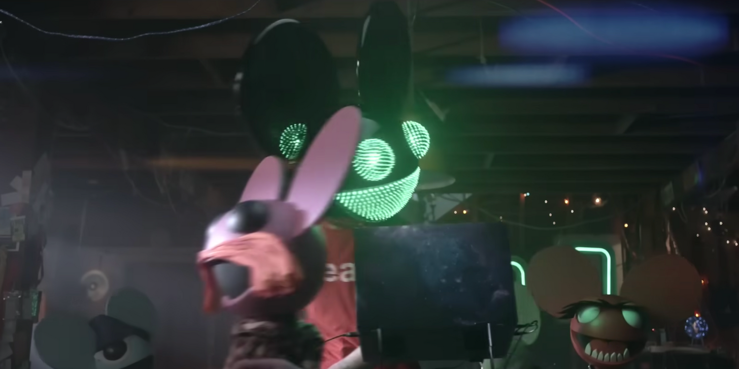 En la misma secuencia, el productor musical deadmau5 aparece con su famoso casco de ratón. Mientras trata de hacer EDM con The Electric Mayhem, cada uno luce su propio casco cómicamente grande, lo que hace que deadmau5 se quite el suyo y se pregunte por qué incluso usa su estilo característico.