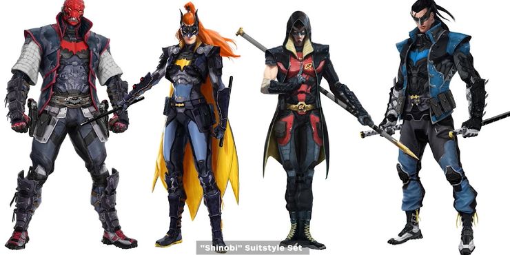 El estilo de traje Shinobi es un tema ecléctico posiblemente inspirado en el relativamente reciente batman ninja película. Estos, sin embargo, no son diseños tomados directamente de la película. El estilo Shinobi parece ser una versión más moderna de la estética shinobi inspirada en el Japón feudal. Lo interesante es que en estas imágenes, los jugadores pueden ver armas de estilo shinobi en manos de la familia de murciélagos, lo que indica que las armas en sí también pueden personalizarse dentro de los estilos de traje, además de sus estadísticas relacionadas con el botín.