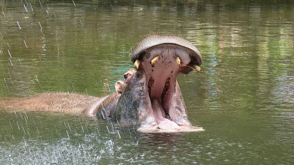 Aunque el hipopótamo tiene fama de tranquilo y apacible, lo cierto es que es una de las especies más temerarias y agresivas del mundo. En la edad adulta, puede alcanzar las dos toneladas de peso, y se calcula que los hipopótamos causan la muerte de 500 personas cada año. A pesar de su gran tamaño, puede correr a 32 kilómetros por hora, y puede mostrarse muy violento si siente que está en peligro.