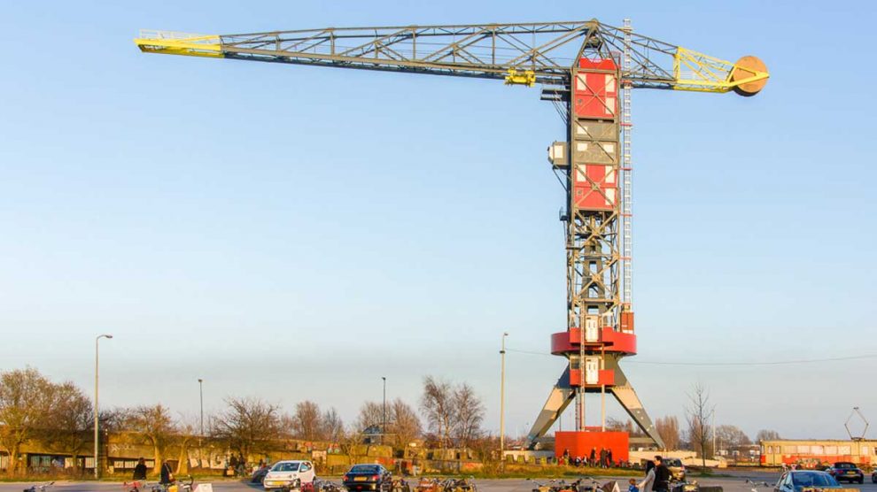 Ubicado estratégicamente en el centro de la capital holandesa, Ámsterdam, podemos observar una enorme y colorida grúa NDSM 13, que viene a ser la fachada del famoso Faralda Crane Hotel.