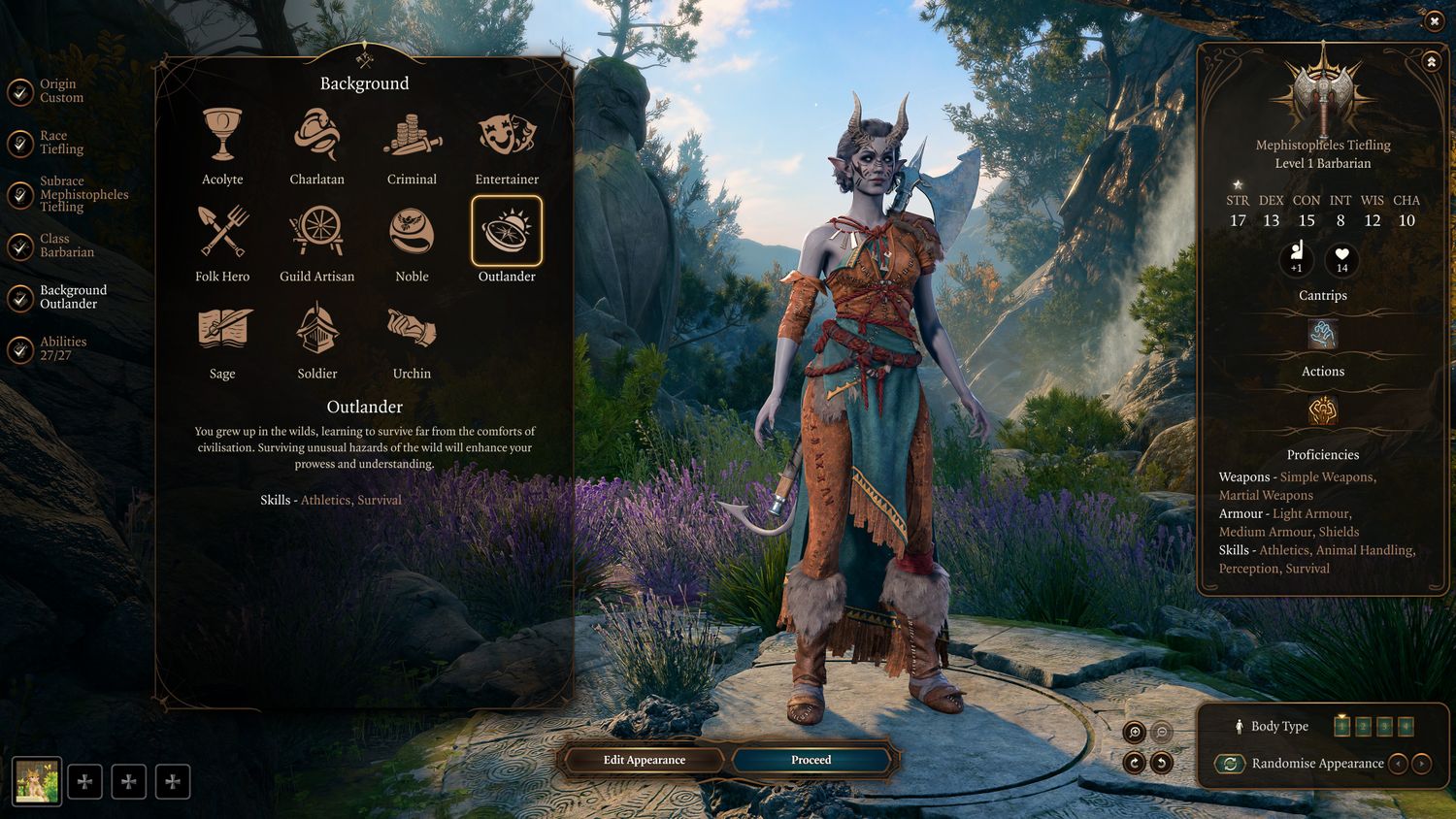 “/> El Trasfondo Outlander es ideal para clases de combate de primera línea como Luchador, Bárbaro y Paladín. Ofrece competencias en Atletismo y supervivencia, dándole a tu personaje algunos beneficios dentro y fuera del combate. El atletismo se basa en la fuerza y se centra en ayudar a tu personaje a empujar y resistir ser empujado a cambio. Empujar es una táctica de combate útil en Puerta de Baldur 3y un personaje que lo use puede empujar a los enemigos fuera del alcance cuerpo a cuerpo o incluso expulsarlos de las repisas hacia su perdición.