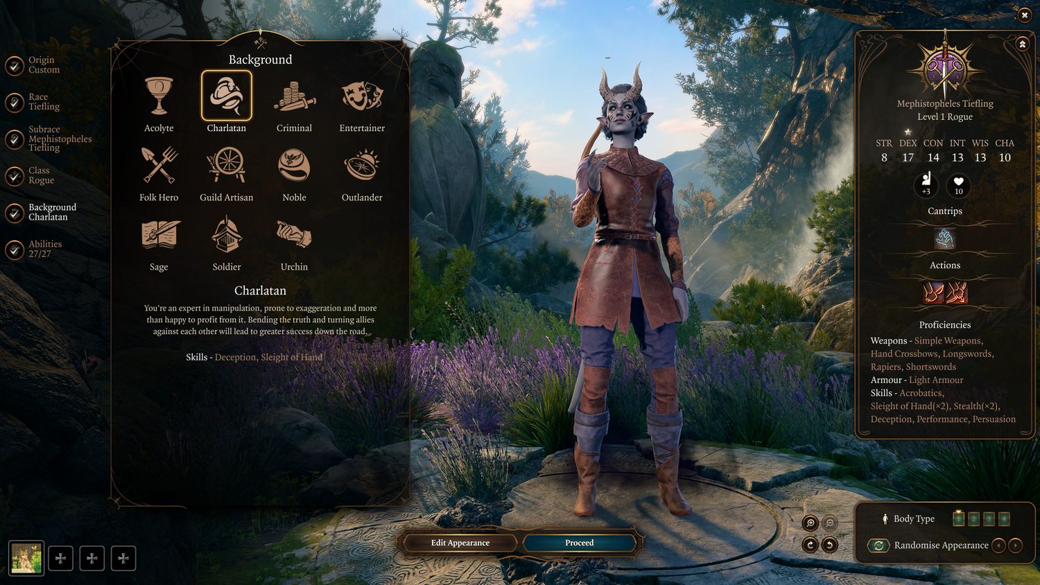 Puerta de Baldur 3 presenta once fondos para personajes personalizados. Cada uno viene con dos competencias en habilidades, que mejoran las probabilidades de tu personaje en ciertas pruebas de habilidades. Cada fondo también presenta Inspiraciones; Básicamente, tomar decisiones sobre la historia de acuerdo con el trasfondo de tu personaje te otorga puntos de inspiración. Estos se utilizan para repetir tiradas, lo que te brinda valiosas segundas oportunidades cuando fallas una tirada. Los mejores Fondos dependen de la clase que elijas, así que elige con cuidado.