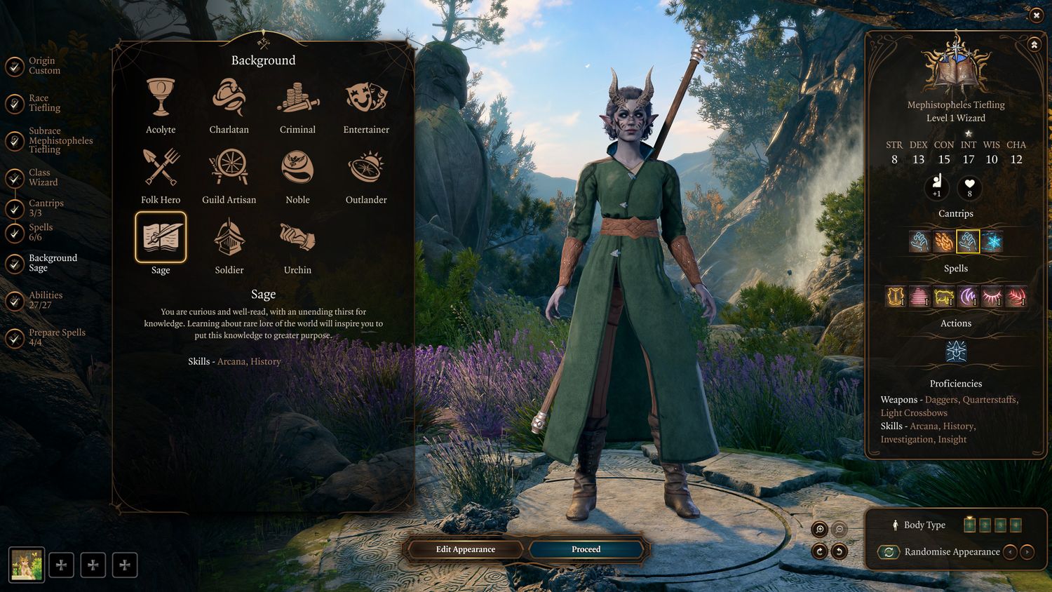 “/> El Trasfondo Sabio es el único Trasfondo que ofrece Competencia en Arcanos: una habilidad basada en la inteligencia que refleja el conocimiento de la magia y lo arcano de un personaje. Esto puede ser útil para compilaciones multiclase de Wizard y es imprescindible para clases de lanzadores de magia como Sorcerer y Warlock. Sin embargo, hay muchos momentos en Puerta de Baldur 3 donde se pueden poner a prueba los conocimientos de magia de tu grupo, y pasar con éxito las pruebas de Arcanos puede abrir opciones únicas. Desafortunadamente, las comprobaciones de Historia son mucho menos comunes, pero podría decirse que vale la pena elegir Sage solo por Arcana Proficiency.