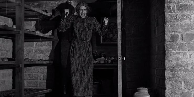 Norman está cometiendo los asesinatos vestido como su madre después de que fusionó su personalidad con la suya para hacer frente a la culpa de matarla por celos edípicos. Este giro se transmite con la impactante revelación del cadáver momificado de la Sra. Bates en el sótano, uno de los momentos más aterradores en la historia del cine de terror.