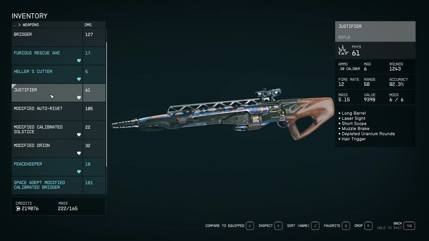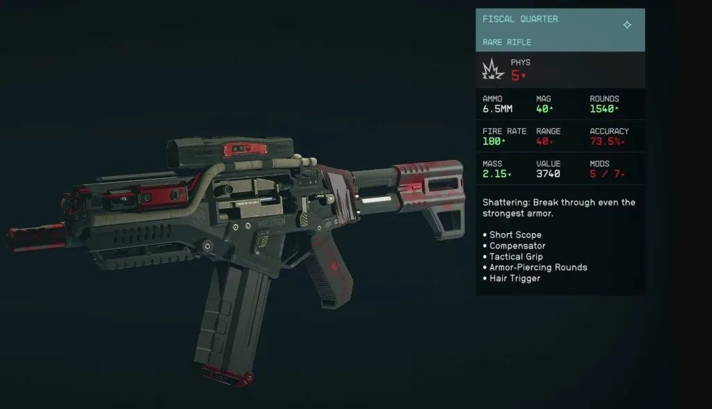 El arma golpea fuerte con un daño base de 60 y es una de las armas más precisas en campo estelar. Viene completamente equipado con modos, que incluyen un cañón largo, mira corta, miras láser, gatillo de pelo y freno de boca. Su único inconveniente es el pequeño clip, de 6, que requerirá recargar con frecuencia.