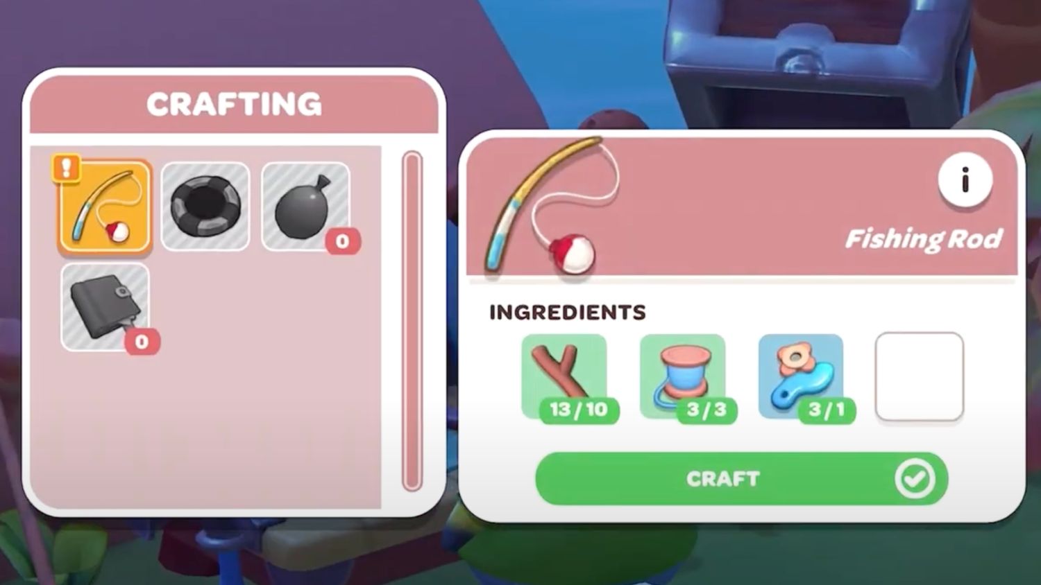 “/> El Caña de pescar es un elemento de elaboración único, ya que se convertirá en una de las principales herramientas que necesitarán los jugadores. Para desbloquear los planos para fabricar una caña de pescar, los jugadores deberán subir de nivel su amistad con Badtz-Maru hasta que inicia su búsqueda tutorial para pescar en Aventura en la isla de Hello Kitty. En ese punto, buscará enseñar a los jugadores a pescar, pero primero deberán fabricar una caña de pescar.