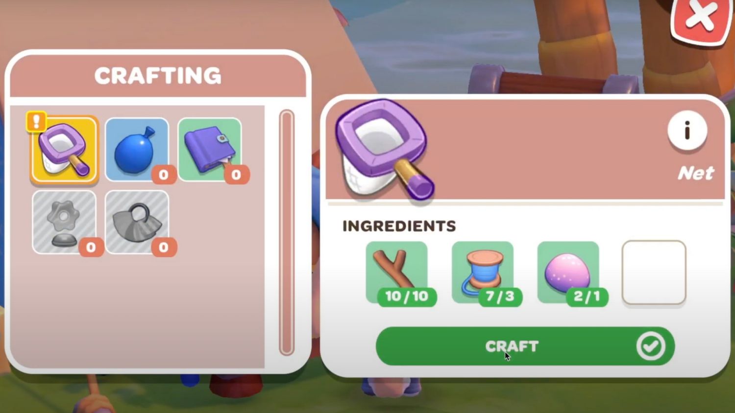 Los jugadores pueden aprender sobre Reserva Natural de Keroppi, donde planea mantener viva la comunidad de criaturas con la ayuda de Critter Lists. Keroppi, en este punto, hará que los jugadores creen una red de insectos para Comienza a atrapar los distintos bichos de la isla.. La Bug Net se puede fabricar con 10 palos, 3 hilos y 1 piedra luminosa. Los palos se pueden encontrar por ahí, el hilo es el regalo de recompensa de Tuxedosam y la piedra de luz es el regalo de recompensa de Kuromi.