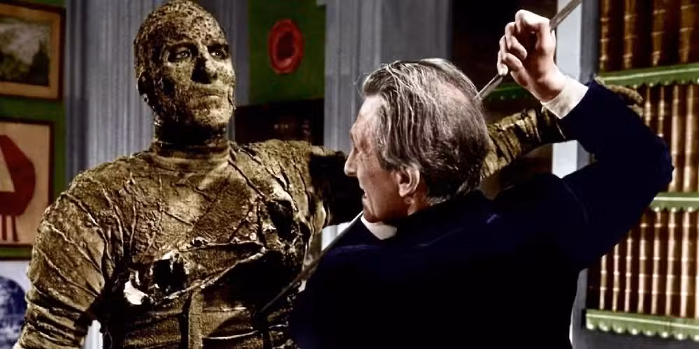 Incluso ahora, la imagen del pesado Kharis de Lee es desconcertante.. El monstruo se siente como el terminador de su día, apenas disminuye la velocidad cuando lo apuñalan o le disparan, y Lee imbuye a la trágica criatura de amenaza y patetismo. También parece que la versión de Hammer del concepto fue la que se recicló para el querido 1999. Momia rehacer.