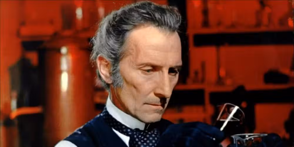 Mientras Frankenstein muestra destellos de humanidad en entradas como la subestimada Frankenstein creó a la mujerse vuelve más monstruo a medida que avanza la saga. Cushing inviste a Víctor con suficiente humor seco y astucia para hacerlo agradable. pero su crueldad casual y su negativa a aprender de sus errores resultan en muchas muertes.