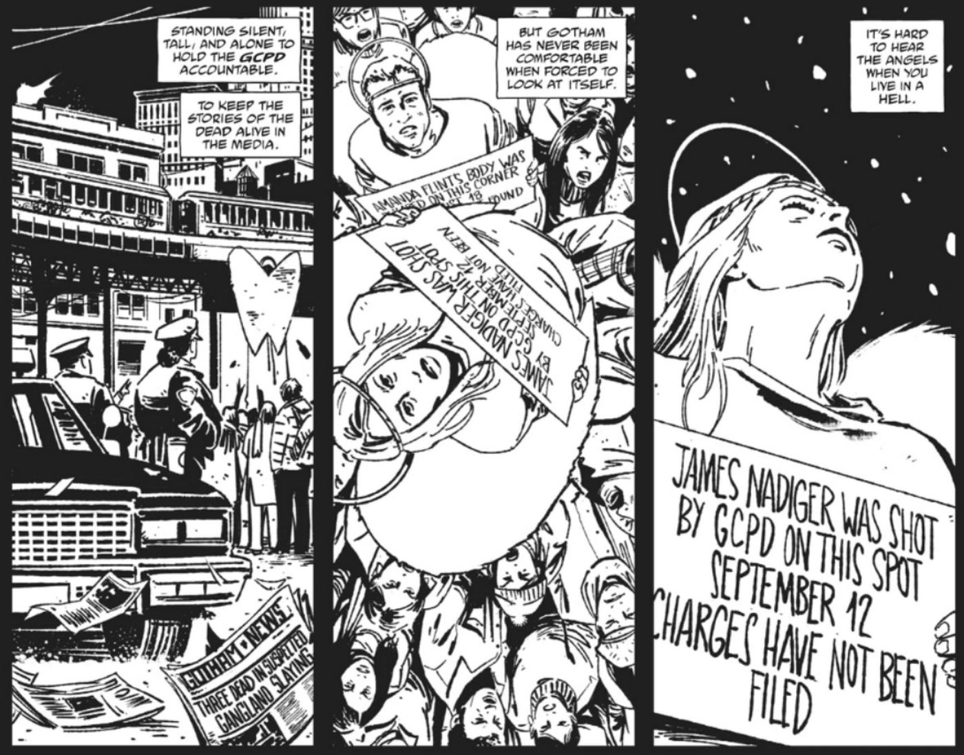 - Mientras Batman y otros héroes luchan activamente contra el crimen, los Ángeles de Gotham brindan un tipo diferente de servicio al recordar a las personas sobre las víctimas caídas e inspirar cambios en una ciudad plagada de corrupción y crimen.