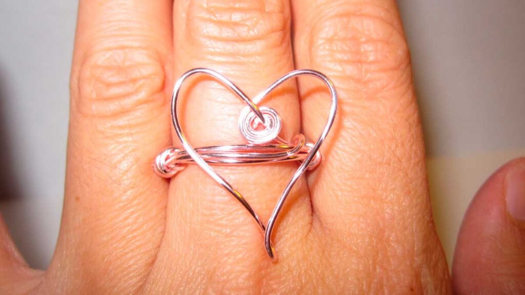 En internet podemos encontrar múltiples formas de hacer anillos de alambre. Lo mejor es empezar por los sencillos, los que solo requieren enroscar alrededor del dedo. Utiliza algo de la misma medida para trabajar sobre ello. El truco aquí es hacer algún distintivo al principio y al final. Como por ejemplo este: