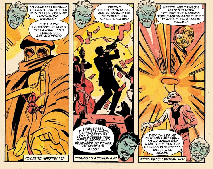 Los criminales que han retenido a Ant-Man como rehén mientras traman su desaparición son The Protector, Trago, The Window Washer y Time Master. Juntos, los villanos forman para hacer… los antagonistas. Este es, de lejos, uno de los nombres más lamentables que se le pueden ocurrir a cualquier equipo de villanos. Se siente como si buscaran en el diccionario cualquier palabra negativa que tuviera el término “hormiga”. En comparación con el equipo de villanos más notable de Spider-Man, The Sinister Six, simplemente no tiene el mismo golpe que puede infundir miedo en los lectores de cómics sabiendo que algunos de los villanos más malvados en la lista de ese héroe se han unido.