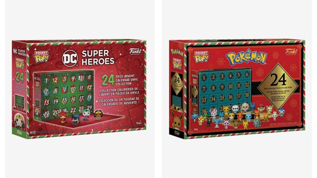 El calendario de adviento de DC Super Heroes muestra la alineación con Pocket Pops de pan de jengibre de Batman y Wonder Woman junto con Santa Joker, Santa Superman y Reindeer Flash. El empaque del calendario de adviento de Pokémon es un poco más spoiler con lo que parece ser una revelación completa. Hay Pikachu, Bulbasaur, Eevee, Charmander y muchos más.