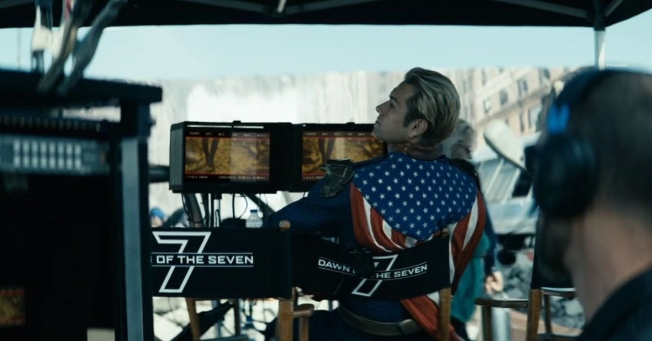 El nuevo episodio de Los chicos comienza de una manera sorprendente. Aunque la reina Maeve entra en escena y evalúa el daño de una batalla, todo está estilizado y hecho de tal manera que claramente no es la realidad. A medida que la escena continúa, aprendemos que está en el set de Amanecer de los siete, la película en el universo del programa sobre el equipo de superhéroes de Vought American (en sí misma una parodia de Batman v Superman de Zack Snyder). Sin embargo, las bromas sobre el DCEU van un paso más allá después de que Maeve termina la filmación de la escena, que aparentemente fue reescrita luego de su salida pública por Homelander, donde el mundo se enteró de que es gay.