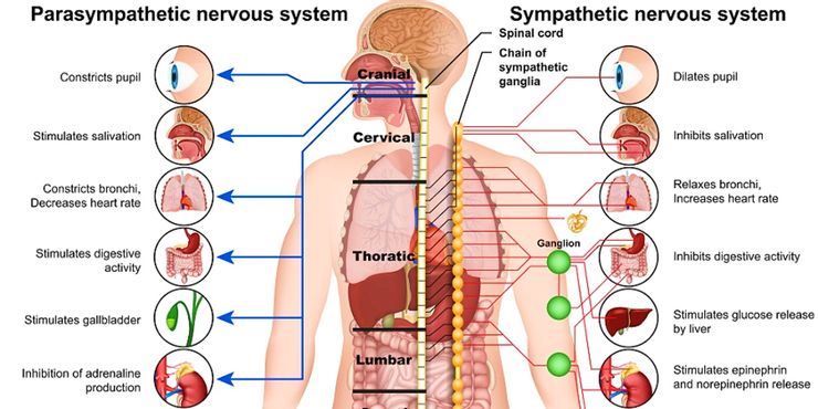 El cuerpo humano es una máquina orgánica inspiradoramente compleja. En resumen, el cerebro controla las acciones voluntarias e involuntarias del cuerpo a través del sistema nervioso. El sistema nervioso se divide en dos principales “regiones,” el simpático y el parasimpático. Los controles parasimpáticos funcionan vinculados a “alimentar, descansar y reproducir“mientras el simpático controla”Pelea o vuela” acciones.