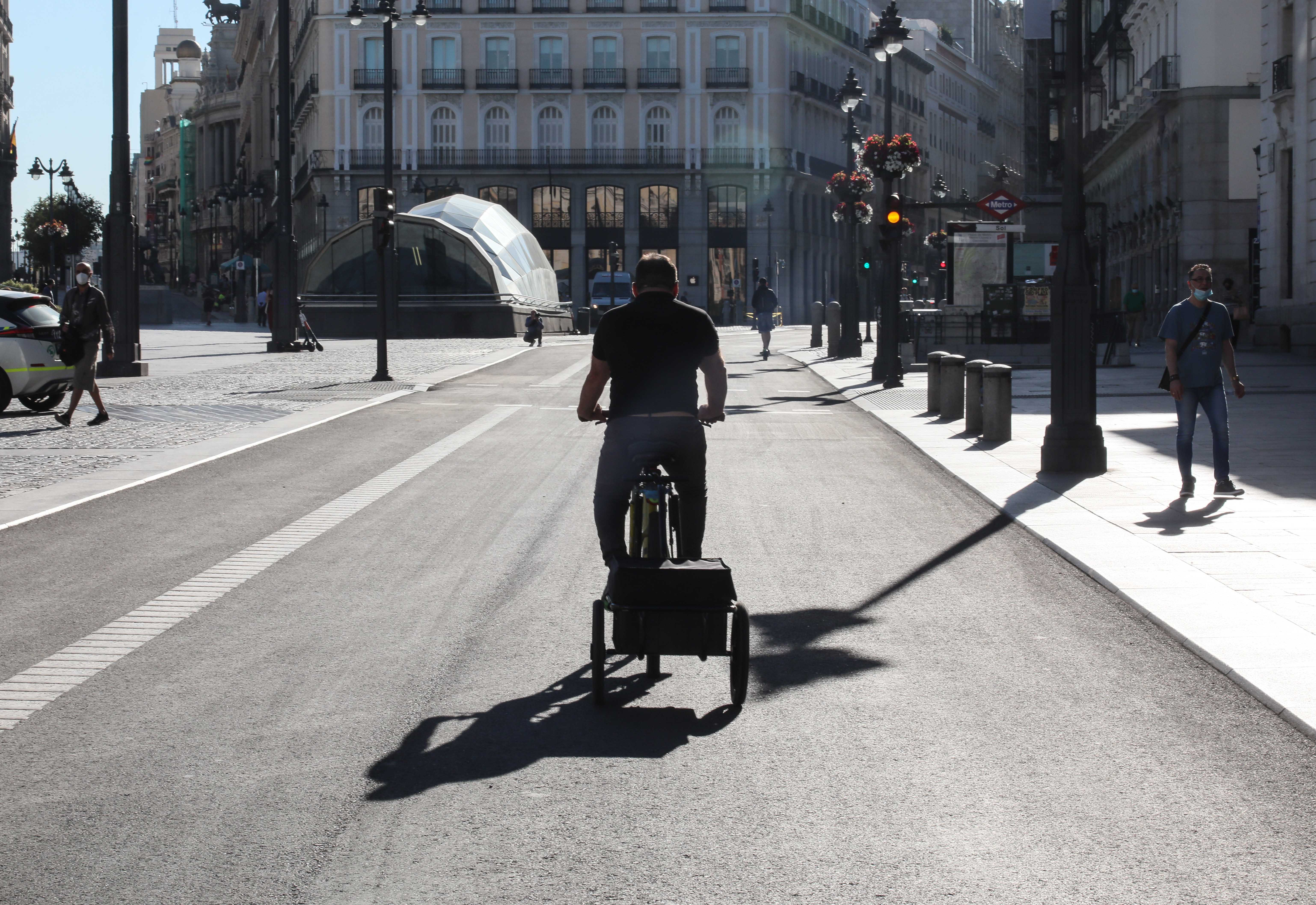 El Ayuntamiento de Madrid sacará este agosto los coches de la Puerta del Sol y de sus calles aledañas antes de acometer las obras necesarias para su ya anunciada peatonalización permanente. El paso de vehículos por este espacio con más de 500 años de historia estará prohibido a partir del 20 de agosto. El proyecto lo avanzó sin fecha ni estimación de costes el alcalde, José Luis Martínez Almeida, en septiembre de 2019 y él mismo ha sido el encargado de darle hoy carta de naturaleza y de fijar un plazo: el próximo año. De la dotación presupuestaria aún no se ha hablado. Convertir la Puerta del Sol en un espacio solo para peatones es un viejo sueño municipal. De hecho, para llevar a cabo de reforma de la plaza Almeida repescó el plan de Ana Botella de 2014. En la zona, en pleno corazón de Madrid Central, el coche ha ido cediendo espacio al viandante desde hace años. El alcalde también ha anunciado la creación de 12 kilómetros de carril bici temporales, que se suman a los 46,7 existentes.