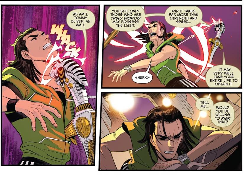 La recontextualización más notable de los cómics se produce entre Vamos, vamos, Power Rangers #25 y #27. Estos números reinventan cómo Tommy Oliver obtiene sus poderes de White Ranger, pero de una manera que teóricamente encaja dentro de la narrativa de la serie de televisión.. Aunque gran parte de los cómics se desarrollan como una actualización moderna del canon original utilizando tecnología moderna, este es un raro caso en el que los paneles funcionan como una entrada intermedia perfecta que muestra lo que le sucedió a Tommy entre las dos partes de “White Light”. .