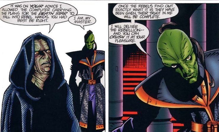El 1996 Guerra de las Galaxias historia Sombras del Imperio proporcionó una especie de borrador de la ejecución actual de Guerra de las Galaxias historietas. El original Oscuridad ofreció una mirada sin precedentes en ese momento a lo que Lucas, leer, y Darth Vader estaban entre sus aventuras en pantalla. Los fanáticos pudieron ver cómo sus personajes favoritos lidiaron con las consecuencias de El imperio contraataca y como intentaron rescatar Han Solo antes de El regreso del Jedi. Veinticinco años después, Guerra de las Galaxias los cómics cubren el mismo período de tiempo entre películas. Pero con el beneficio de películas, series de televisión, libros y cómics de un cuarto de siglo, los cómics actuales pueden contar una historia similar de una manera más expansiva y emocionalmente satisfactoria.