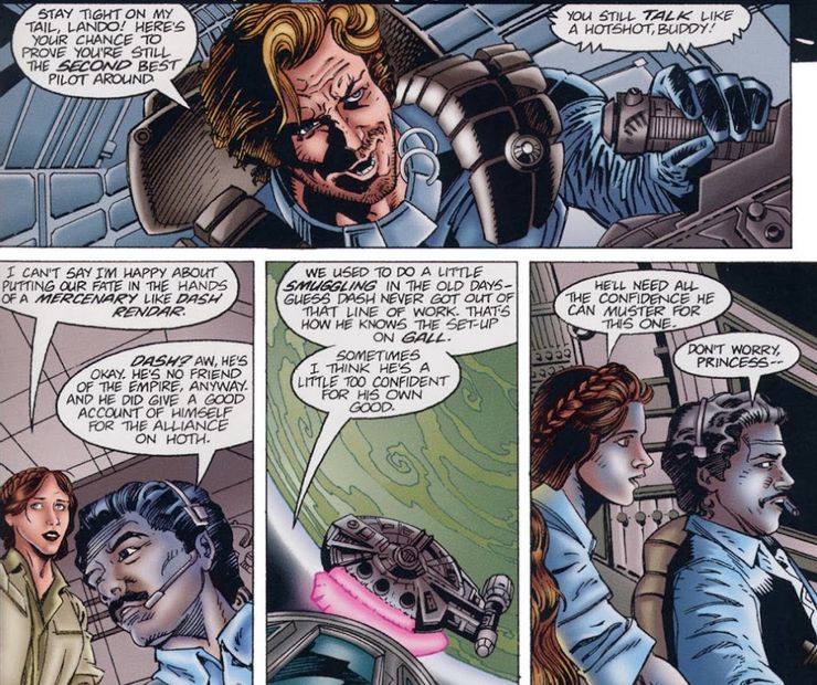Toda buena Guerra de las Galaxias La historia necesita un contrabandista corelliano arrogante, pero con Han Solo congelado en carbonita, era Dash Rendar quien tenía que cumplir ese papel. Rendar fue una estafa bastante descarada de Han, ya que era un forajido que se unió a la Alianza Rebelde, a pesar de afirmar que no tenía lealtad a la causa y solo estaba en ella por el dinero. Primero es contratado por Lando para localizar a Han Solo, y luego contratado por Leia para proteger a Luke mientras él y un grupo de espías bothan roban planes para la segunda Estrella de la Muerte. Rendar fue tal vez Sombra del Imperioes la adición más notable a Guerra de las Galaxias canon en ese momento, ya que era el protagonista del juego de Nintendo 64 e incluso recibió su propia figura de acción. Pero le faltaba la arrogancia del nerf-pastor favorito de todos y es asesinado al final de la historia. Mientras mas tarde Leyendas Los cuentos establecerían que en realidad fingió su muerte, Dash Rendar no ha aparecido en el nuevo Guerra de las Galaxias canon más allá de una breve mención en un Solo: una historia de Star Wars libro de empate.