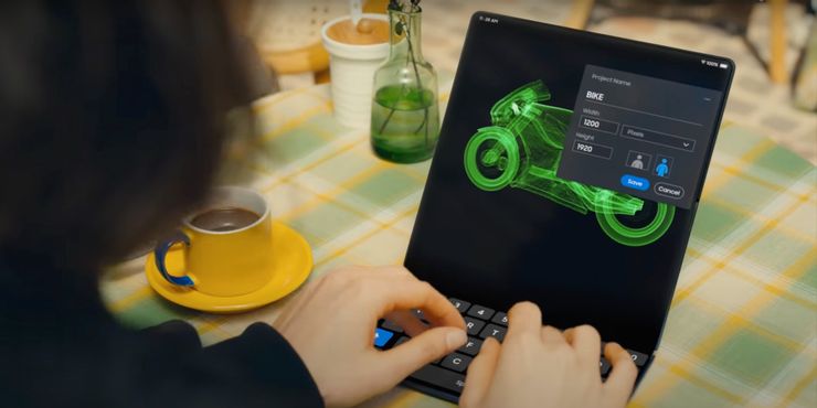 El video muestra el uso del Galaxy Flex S en modo soporte como una mini computadora portátil. La pantalla plegable triple del Flex G, por otro lado, se transforma en una computadora portátil de tamaño casi completo, con el tercio inferior funcionando como un teclado de pantalla táctil. El teléfono deslizable verticalmente muestra un dispositivo compacto que se tira hacia arriba para transformarse en una pantalla con una relación de aspecto alta que es perfecta para desplazarse por aplicaciones como Instagram. El deslizable ancho, por otro lado, se anuncia como una pantalla negra verdadera y sin halo para el consumo de medios.