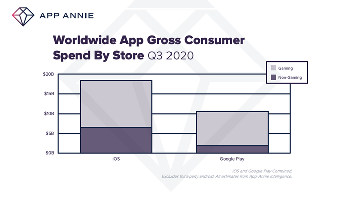 Los consumidores también gastaron un récord de $ 28 mil millones en aplicaciones en el tercer trimestre de 2020, el trimestre más grande hasta la fecha.