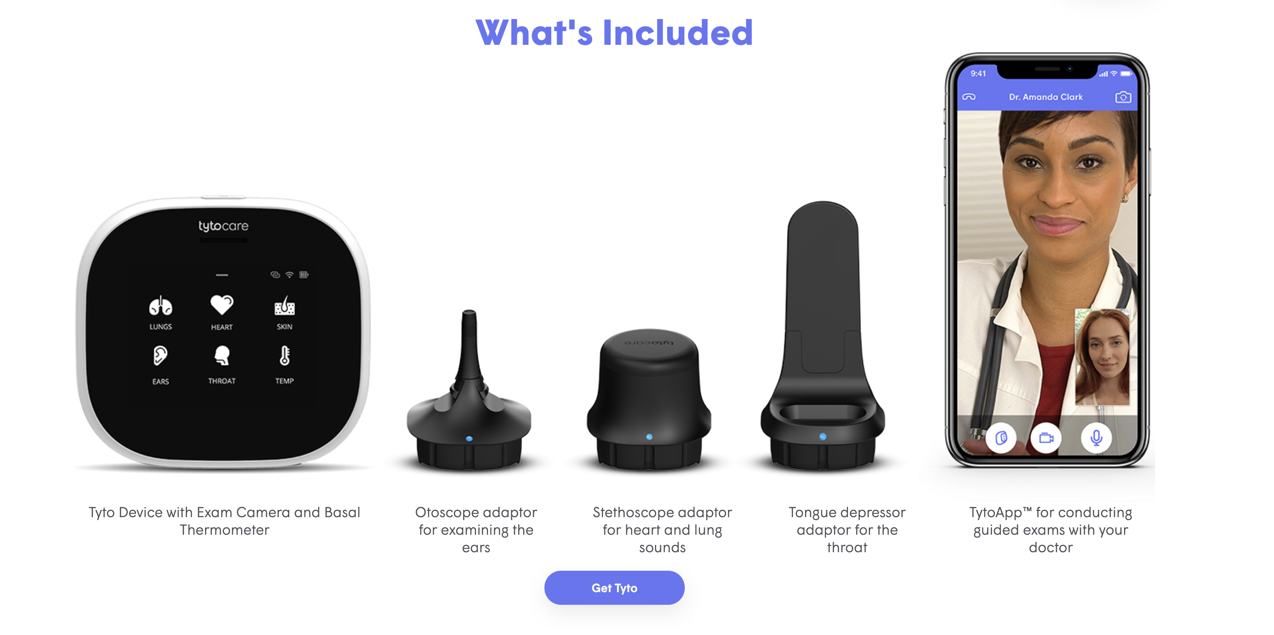 Anteriormente, Tyto vendió su tecnología a través de planes de atención médica, haciendo que su dispositivo de examen de mano (con accesorios que actúan como termómetro, un estetoscopio, un otoscopio y un depresor de lengua) esté disponible para las familias con seguro que desean reducir el costo de los chequeos a través del monitoreo remoto. El dispositivo de mano de la compañía viene con una cámara de examen para que pueda indicar a los usuarios dónde colocar el dispositivo para obtener las lecturas más precisas.