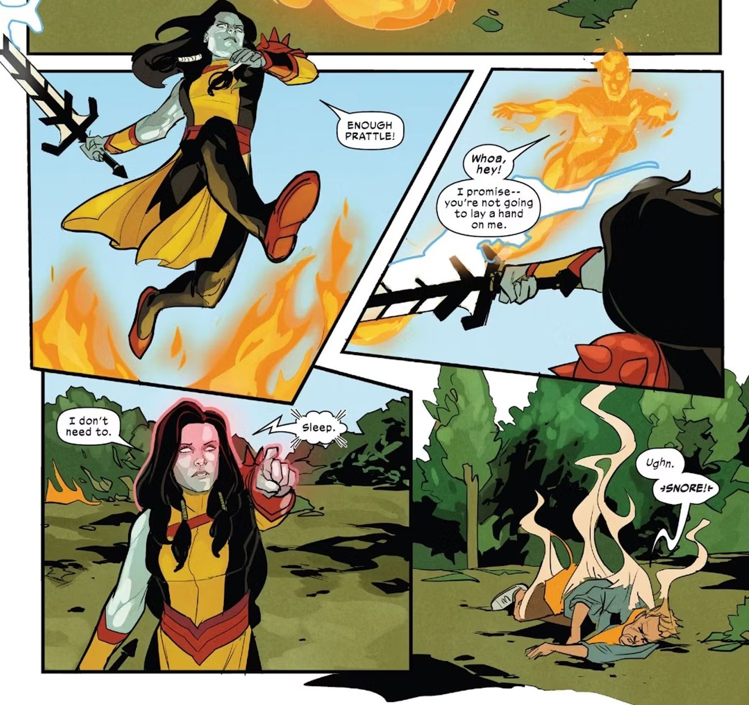 Inflexible en hablar con Reed Richards, buscando su ayuda para disfrazar sus genes X, Rasputin no permitirá que nada se interponga en su camino, lo que la llevará a noquear tanto a Ben Grimm como a Johnny Storm.