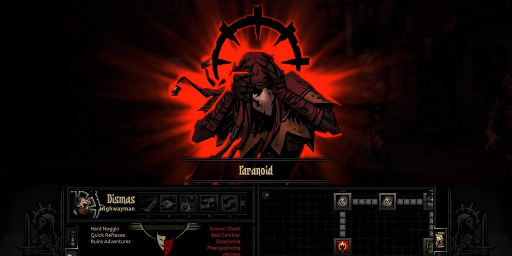 Darkest Dungeon, una versión de horror oscuro del género RPG Dungeon-Crawling, pone a los jugadores en la piel de un heredero aristocrático que debe alistar a un equipo de aventureros para sellar el antiguo mal desatado por su ancestro decadente. Cada vez que estos aventureros encuentran horrores espantosos, adquieren Estrés, que tiene la posibilidad de desencadenar aflicciones que alteran el comportamiento como “Masoquismo”, “Irracional” o “Paranoico”. Los hospitales, los asilos y las tabernas en la aldea natal pueden calmar la psique de tus héroes, pero los recursos limitados hacen que sea tentador simplemente abandonar a los aventureros dañados y reclutar al próximo tonto de cara fresca …