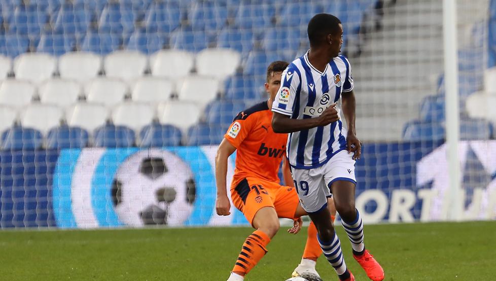 Isak, el titular en las cuatro jornadas disputadas, encarna la sequía en la punta de lanza. El sueco, en su periodo más pobre desde que fichó por la Real, no halla la manera de perforar la portería rival. No ha visto puerta en los 272 minutos que suma y ha malgastado ocasiones de gol en Valladolid, dos contra el Real Madrid, cuatro en Elche y una frente al Valencia, ésta en posición sui géneris. Más relativa es la cuenta virgen de Willian