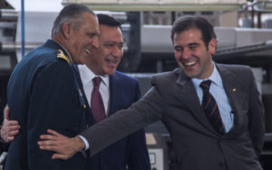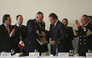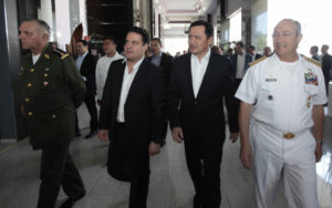 El estratega. Acompañado de Aristóteles Sandoval, Miguel Ángel Osorio Chong y Vidal Francisco Soberón, entonces gobernador de Jalisco, secretario de Gobernación y secretario de la Marina, respectivamente. El 5 de mayo de 2015, los funcionarios se reunieron en Guadalajara para hablar sobre el diseño de la estrategia de seguridad para combatir los hechos violentos registrados en la zona a raíz de las acciones para desarticular la organización criminal que opera en Jalisco.