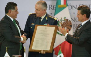 Agradecen en Veracruz. En Xalapa, el 3 de diciembre de 2017, el entonces gobernador de Veracruz, Miguel Ángel Yunes Linares, le entrega la Medalla Adolfo Ruiz Cortines 2017 por el apoyo brindado en materia de seguridad pública y en la aplicación del Plan DN-III-E por parte del Ejército y Fuerza Aérea Mexicanos a los veracruzanos. La condecoración es otorgada anualmente por el Congreso del Estado a quienes sobresalen por sus acciones en la participación ciudadana de la sociedad.
