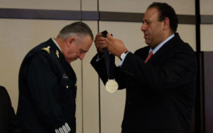 Condecorado. El general fue galardonado con la Medalla al Mérito Militar Joaquín Amaro García, entregada por el presidente del Consejo Nacional de Abogacía, José Ricardo García Villalobos, el 30 de junio de 2015.